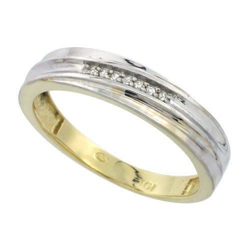 Buy 10k Yellow Gold Mens Diamond Wedding Band Ring 0.04 cttw Brilliant Cut, 3/16 inch 5mm wide, Size 9.510k Yellow Gold Mens Diamond Wedding Band Ring 0.04 cttw Brilliant Cut, 3/16 inch 5mm wide, Size 9.5 Product Description:
