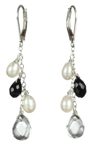 Buy Sterling Sliver Lever Back White Freshwater Cultured Pearl, Black Onyx and Crystal Cluster Drop EarringsSterling Sliver Lever Back White Freshwater Cultured Pearl, Black Onyx and Crystal Cluster Drop Earrings Product Description: