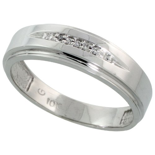 Buy 10k White Gold Mens Diamond Wedding Band Ring 0.03 cttw Brilliant Cut, 1/4 inch 6mm wide, Size 1210k White Gold Mens Diamond Wedding Band Ring 0.03 cttw Brilliant Cut, 1/4 inch 6mm wide, Size 12 Product Description: