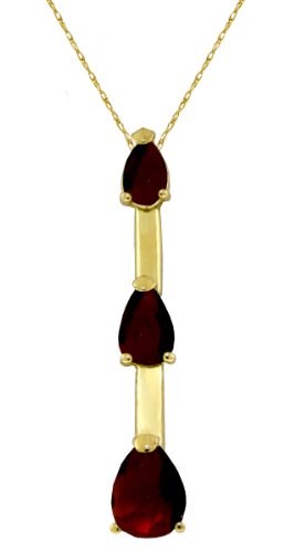 A 14 karat Solid Gold 18" Necklace featuring (starting from top): a 5X3mm with 0.26ct Garnet, a 6X4mm with 0.60ct Garnet and a 7X5mm with 0.85ct Garnet. These Natural Garnets are set in a 14 karat Solid Gold Bar. Item comes in an elegant black leatherette jewelry box.