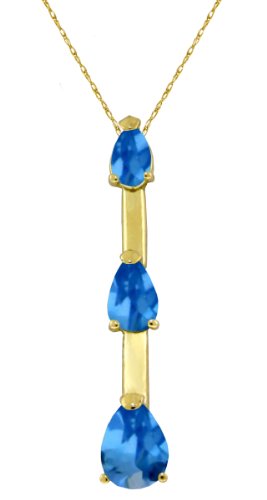 A 14 karat Solid Gold 18" Necklace featuring (starting from top): a 5X3mm with 0.26ct Blue Topaz, a 6X4mm with 0.60ct Blue Topaz and a 7X5mm with 0.85ct Blue Topaz. These Natural Blue Topaz are set in a 14 karat Solid Gold Bar. Item comes in an elegant black leatherette jewelry box.